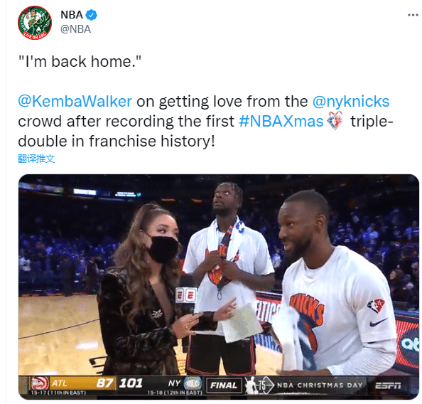 第二、沃克是尼克斯队史第一位在年终大战拿到三双的球员,该纪录队史第一人