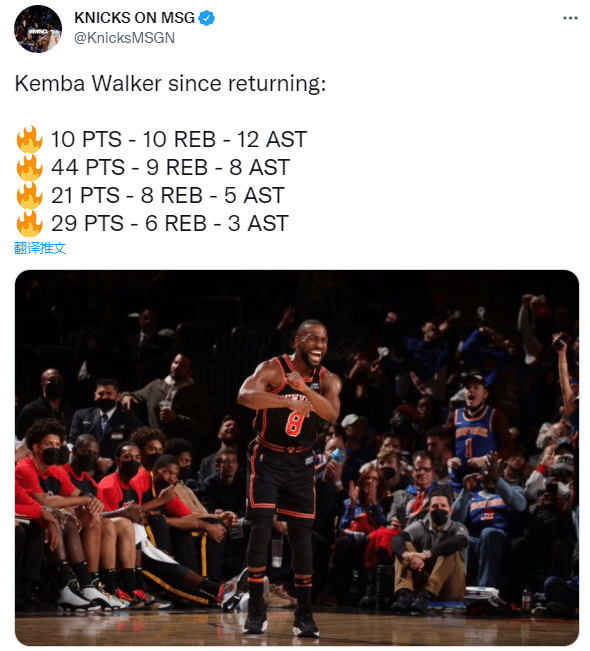 31岁沃克用表现证明了锡伯杜当初的决定是多么愚蠢,加油肯巴-沃克,你仍旧配得上尼克斯首发的位置。