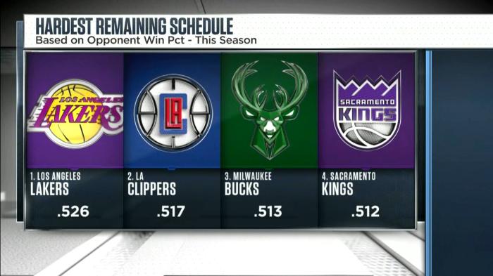 不久前,NBA转播方给出了2021-22赛季剩余赛程最难(根据对手胜率)的四支球队,分别如下: