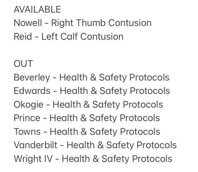 来源:24直播网12-24 20:5424直播网12月24日讯 北京时间12月24日,森林狼官方PR公布了最新的伤病名单,唐斯触发健康安全协议,森林狼被隔离的球员增至7位。除了唐斯,贝弗利、爱德华兹、奥科吉、普林斯、范德比尔特和奈特四世都在其中。唐斯发推爆粗:“他x的不让我消停一下。”