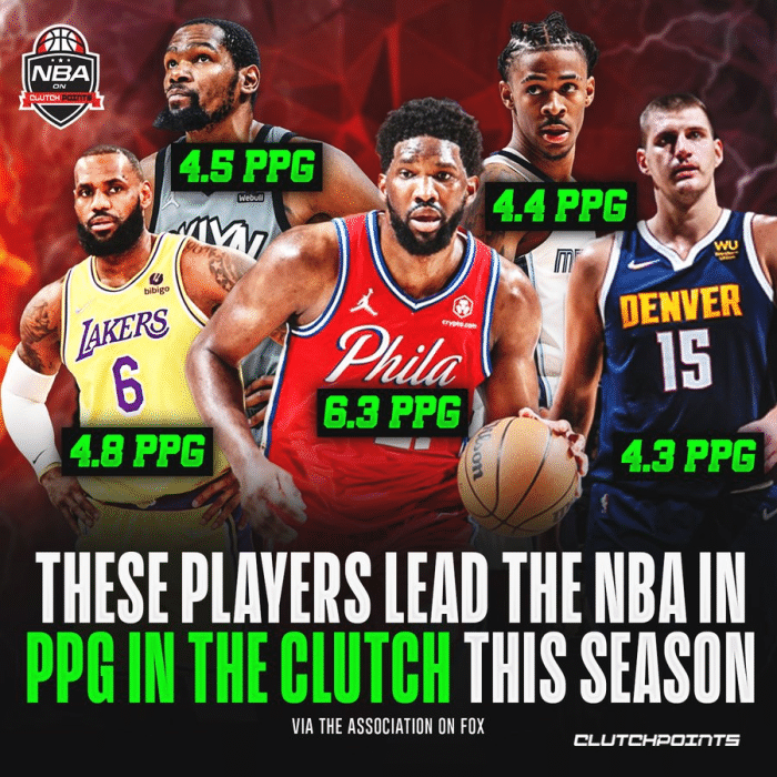 关键得分排名前五!恩比德6.3分联盟第一,詹姆斯力压杜兰特排第二