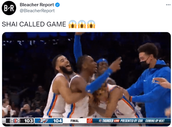 雷霆和快船末节还剩最后6.9秒,吉迪边线发球,把球传给穆斯卡拉,之后穆斯卡拉把球传给亚历山大,面对巴图姆的干扰,亚历山大一个急停晃开巴图姆的防守,稳稳命中压哨三分,手起刀落,终场哨响,雷霆主场绝杀快船,此时亚历山大疯狂跳舞庆祝,雷霆主场响起震耳欲聋的欢呼声和尖叫声,球馆全都沸腾了。