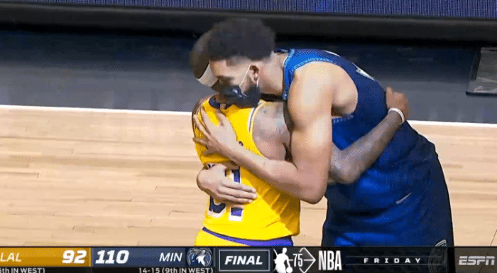 湖人输球后,詹姆斯扭头沮丧离场,威少把自己的球鞋扔给现场的球迷,小托马斯则是拥抱唐斯;拿着一份十天短合同,1米75小托马斯用进攻来弥补自己的防守不足,进攻端依旧很犀利。