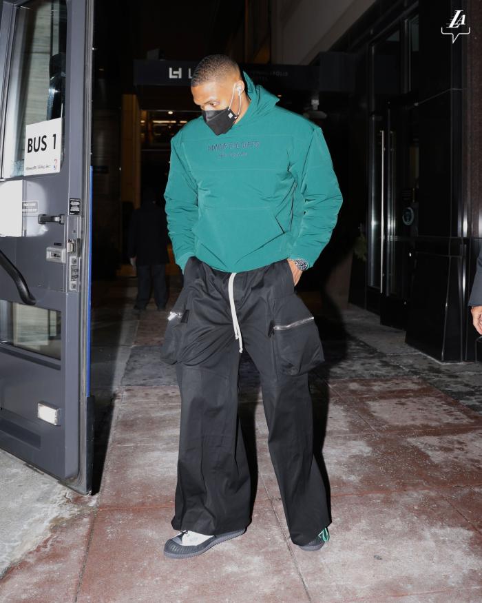 威少身穿绿色连帽卫衣和黑色长裤,即使天气寒冷,威少的打扮依旧很潮流;昨天威少因触发防疫协议而被隔离,不过仅过一天,威少就解除隔离,连续多次检测结果呈阴性,火速复出重返球队,立即乘坐飞机飞抵明尼苏达。