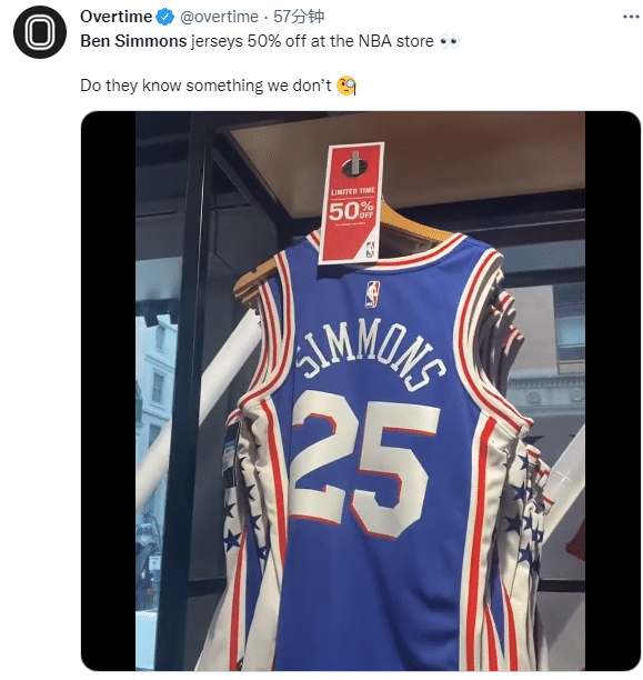 西蒙斯离队已经板上钉钉了吗?NBA商店正在打折出售西蒙斯的25号球衣。