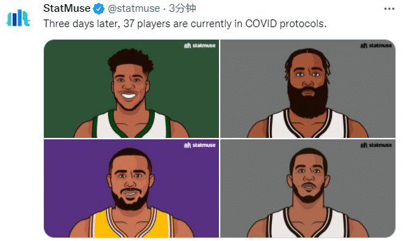 目前全联盟已经10多支球队有球员查出阳性而被隔离,湖人、篮网、雄鹿等强队也遭殃了,哈登和字母哥都不幸中招,其中篮网已经有7名球员被隔离;虽然一些球员已经解除隔离,但现在联盟还有37名球员因触发健康安全协议而被隔离。