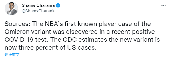 来源:24直播网12-16 15:2824直播网12月16日讯 ,NBA正遭遇新冠病毒的侵袭,更令人担忧的是变体病例已经出现了,据名记shams报道,在最近的新冠阳性测试中发现了 NBA 首例已知的Omicron变体球员病例,美国疾控中心估计,这种新变种现在占美国病例的3%。