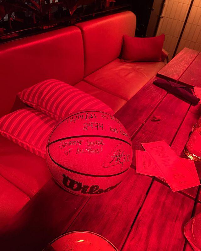 库里还晒出自己带着印有“2974并且还在继续”纪念帽的画面,并且晒出属于自己的纪念球——篮球上写着2974以及破纪录的日期,写着历史最伟大射手,还有亲笔签名。