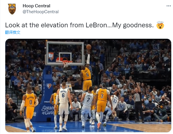 美媒Hoop Central发推:看看詹姆斯的高度,我的天呐。