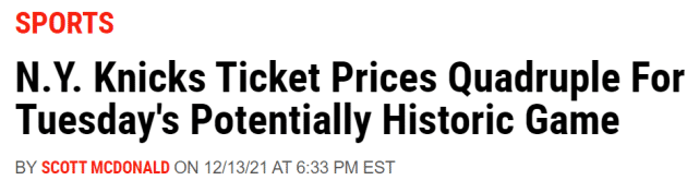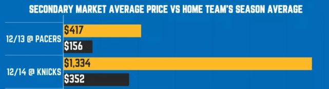 尼克斯主场球票的价格一向是联盟最贵之一,但这场常规赛的票价已经卖到了季后赛的级别。据悉,这场比赛的最低票价是300美元,而尼克斯主场球票虽贵,常规赛最低票价也基本都在200美元以下。