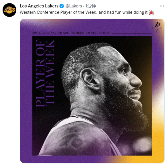 詹姆斯经常称呼自己为过气的国王,本赛季多次被质疑太老了,如今36岁詹姆斯又开启统治模式,最近8战6次轰下30+,上一场更是砍下30+三双,凭借上周出色的表现,詹姆斯当选西部周最佳球员,职业生涯第65次当选,继续刷新自己保持的历史第一纪录。