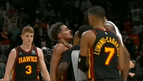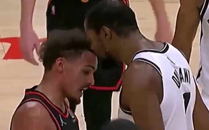这场比赛中杜兰特和特雷杨还一度发生了冲突,这是比赛进行到还剩下2分02秒的时候,篮网领先老鹰5分,比赛打得很焦灼。杜兰特和特雷杨在一次跑位卡位过程中出现摩擦,两人先是推搡了一下,随后贴面对喷险起冲突。不过马上两人就被队友给拉开了,没有影响到接下来的比赛。之后杜兰特投进关键球,而特雷杨的三分球偏出,最终杜兰特的篮网拿下胜利。