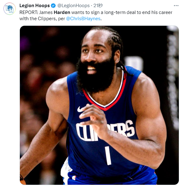 名记Chris Haynes在暂停期间现场报道,他称哈登想续一份长期合同,希望在快船结束自己的职业生涯;同时Haynes透露哈登很看好以乔治小卡为核心、卢掌控全局的阵容前景。