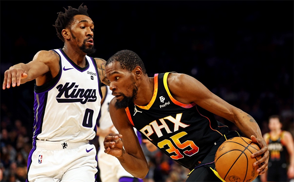 下半场,杜兰特三分开张,布克和阿伦输送火力,可福克斯、小萨和穆雷连中三分,一波流浇灭太阳的反扑火焰并且领先到21分,之后太阳三巨头继续抵抗,三节打完太阳落后12分;期间杜兰特险些惨遭穆雷隔扣。