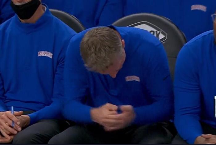 库里愚蠢犯规,科尔气到乱打拳,变脸真快!却被萌神中圈压哨折服
