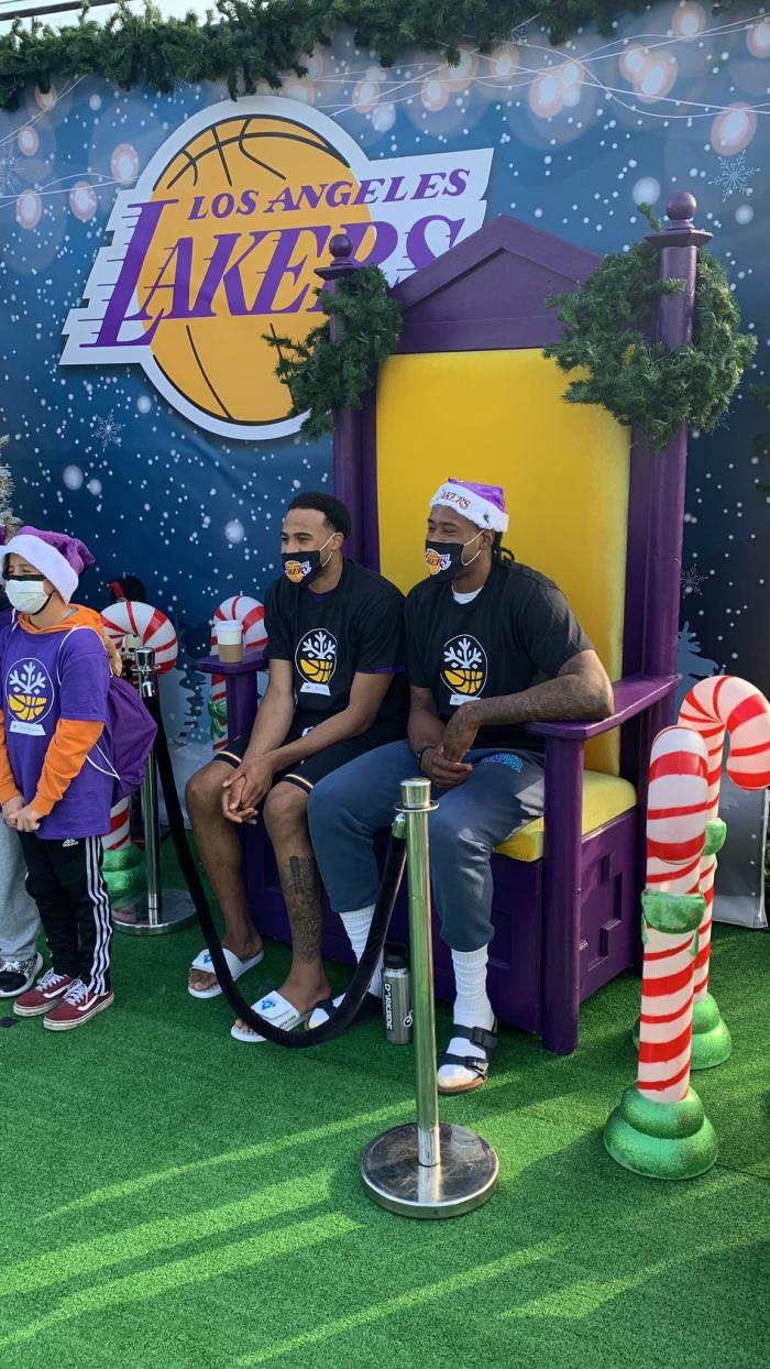 湖人举办暖心活动!浓眉戴圣诞帽安东尼故意投偏,朗多口罩白戴了