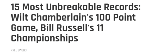 15项NBA个人纪录最难打破!现役无人上榜,张伯伦独占5席