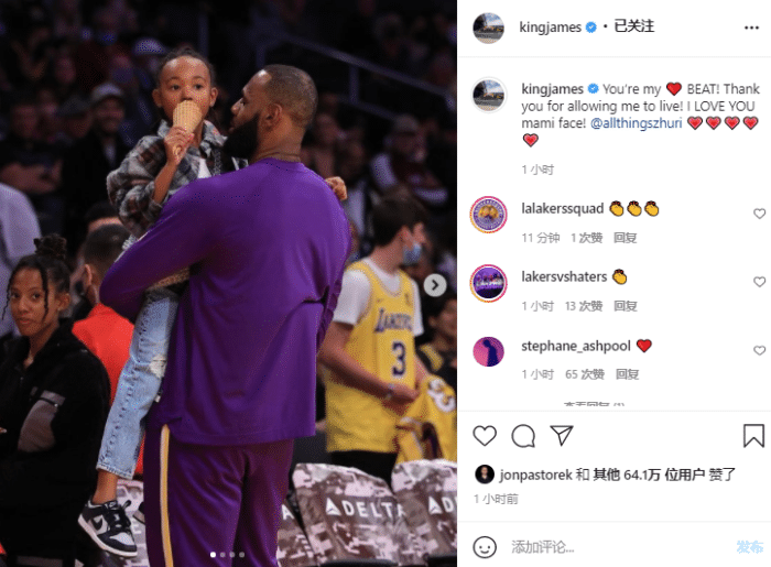 詹姆斯晒拥抱亲吻女儿合影,暖心!配文:你是我的心跳,我爱你