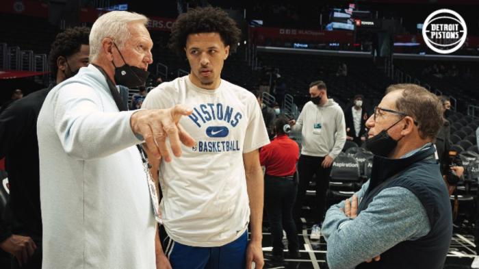 值得一提的是,坎宁安和快船顾问杰里-韦斯特站在场边交流,logo男应该是给后辈一些建议和指导,还做了一些手势和动作;活塞官方晒出坎宁安和NBA传奇同框聊天的画面;不过美媒Bally Sports调侃这一幕,发推写道:杰里-韦斯特真早招募坎宁安来洛杉矶。