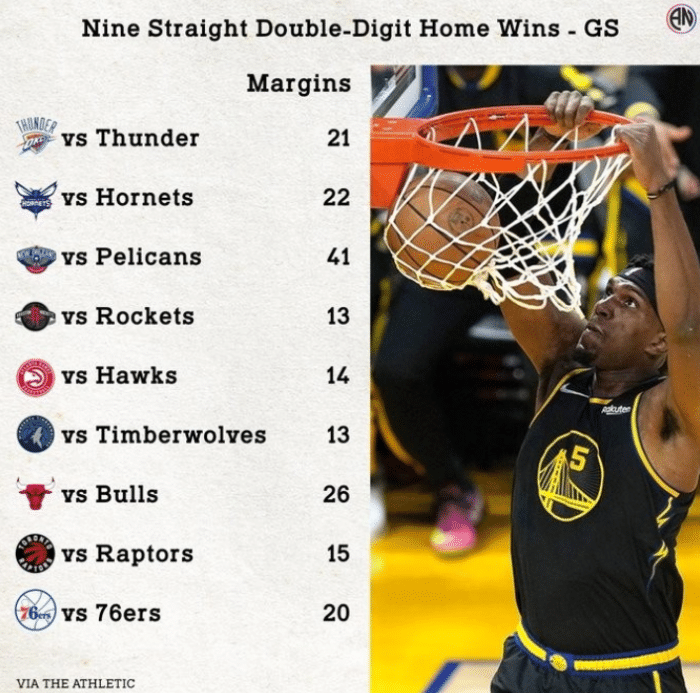 数据证明勇士主场太难攻克,鹈鹕输了41分,连续9场取胜两位数