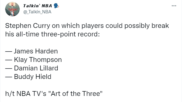 库里本人给出一份名单:哈登利拉德在列 谁能打破库里三分纪录?