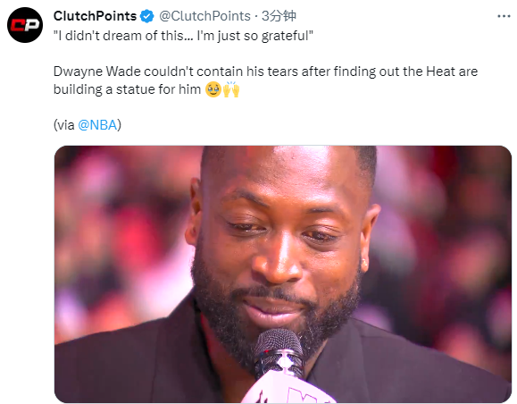 对于莱利宣布将为他立雕像,韦德动情表示:我没有梦想过这个。我非常感恩。我等不及让那一天早点到来了。