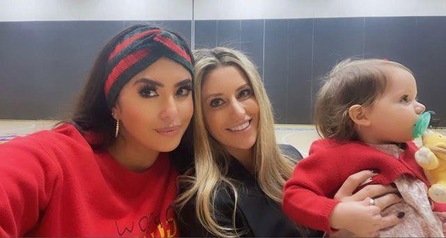 瓦妮莎还和珍妮-巴斯、兰比斯、大加索尔的妻子凯特一起合影,享受闺蜜时刻。她们躺在湖人训练馆的地板上自拍,瓦妮莎配上了紫金的心形图案。瓦妮莎还和凯特、伊莉莎白合影,她是伊莉莎白的教母。