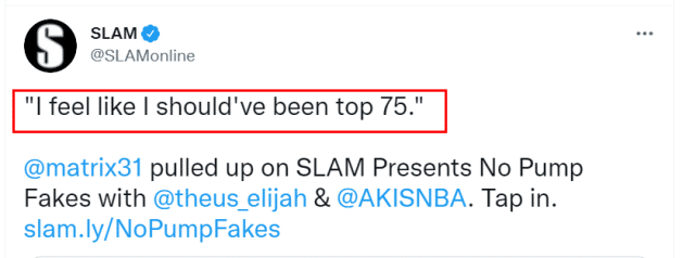 “我觉得我应该在那份名单里,回顾我的职业生涯,考虑到以我6英尺7英寸(2米01)的身高能打出的数据,我没有得到足够的关注,我觉得我应该进入前75位,”马里昂说道。他的这一言论,已经让其中一位主持人瞪大双眼。
