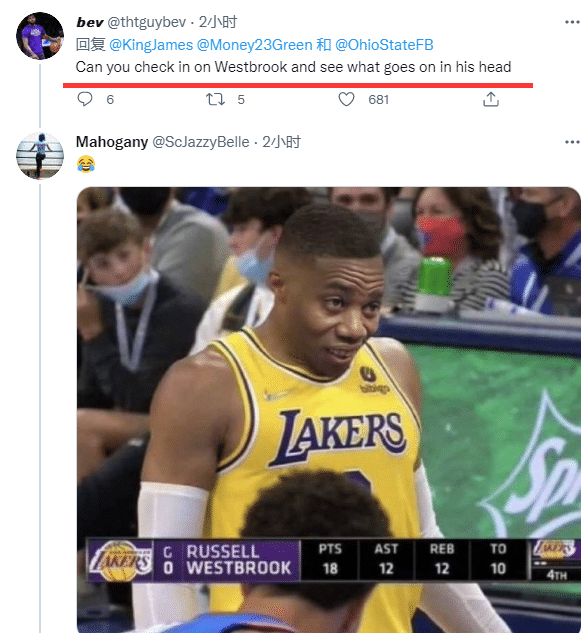 不过詹姆斯调侃格林失踪的推文因热议,各种评论又扎心威少——有球迷在评论区回复詹姆斯:你能去看看威少吗?看看他脑子里究竟想啥呢?还有球迷恶搞威少拿到四双的画面。