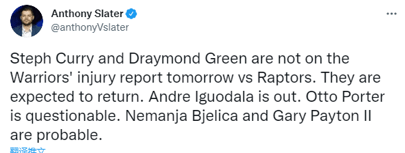 库里最新伤情出炉!库里格林都已不在伤病名单,预计下一场复出