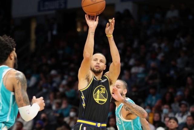 StatMuse的数据显示,在这个赛季前,NBA历史上只有三个赛季有球员场均命中至少5记三分,分别是2015-16赛季的库里(5.1个)、2018-19赛季的库里(5.1个)和2020-21赛季的库里(5.3个)。本赛季至今,库里场均命中5.7个三分,状态更加疯狂。