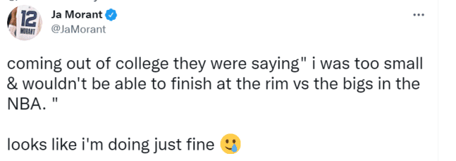 最让人感到神奇的是莫兰特,他竟然是本赛季禁区命中数最多的球员。莫兰特本人也转发了这张图,并点评道:“从大学里出来后,他们说我太矮小了,面对NBA的大个子球员,我根本无法在篮下得分,现在来看,我做得还不错。”