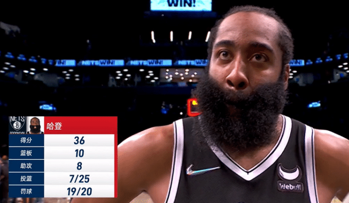 哈登单场罚球出手数20次,创个人篮网生涯新高;