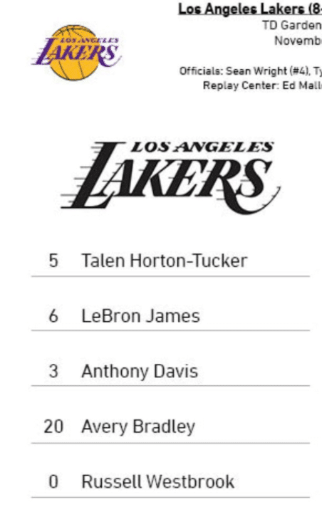 詹姆斯因腹部拉伤休养17天,期间连续缺席8场比赛,湖人仅仅拿到3胜5负的战绩;如今詹姆斯正式复出,湖人的首发阵容再次发生变化,据湖人记者透露,安东尼重回替补,詹姆斯首发出战,另外四名首发球员分别是浓眉、威少、霍顿-塔克和布拉德利,这是湖人全新首发,本赛季首次一起出战。