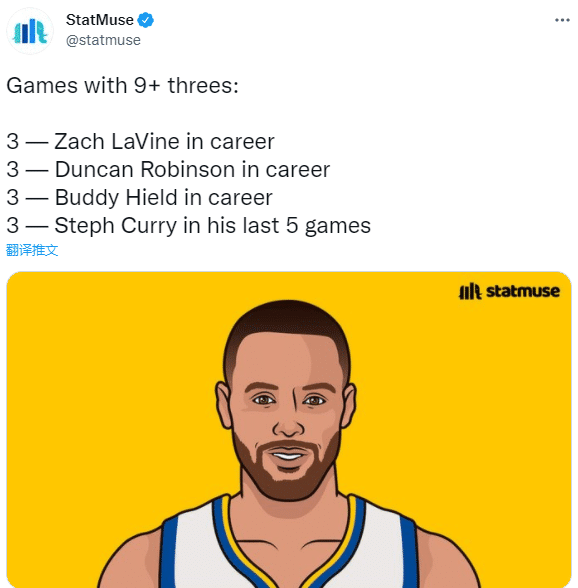 过去5场比赛,库里有三场至少投进9记三分,这比拉文、邓肯-罗宾逊和希尔德职业生涯单场9+三分的次数持平;生涯至今,库里已经37次单场轰进9记三分,不断刷新历史第一纪录。
