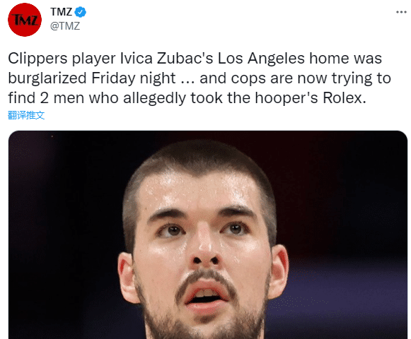 来源:24直播网11-17 10:3824直播网11月17日讯 ,据美媒TMZ报道,快船首发中锋伊维察-祖巴茨遭遇入室抢劫,他的住所被洗劫一空,至少有一件昂贵的珠宝和一块价值超过2万美元的劳力士手表被抢走。