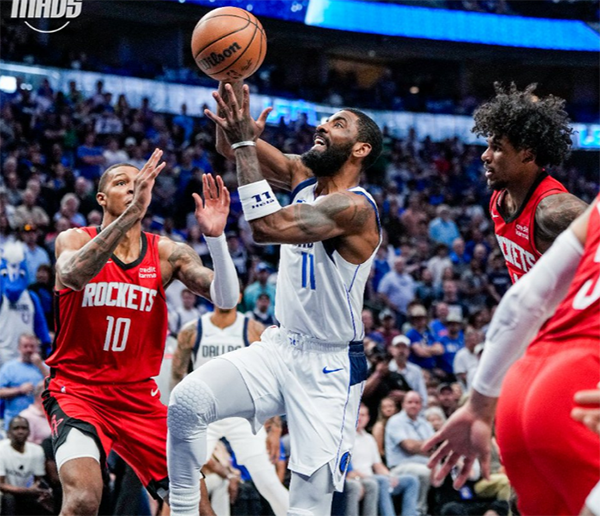 加时赛,欧文火力不减,突破拉杆上篮太精彩,关键时刻,PJ-华盛顿连中三分杀死比赛,最终独行侠加时逆转火箭;赛后欧文和东契奇勾肩搭背相互搀扶,全队抱在一起庆祝。