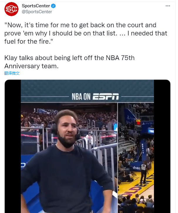 远离赛场877天!汤普森客串解说抢镜,回应落选75大:我很失望