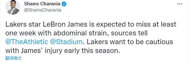 詹姆斯腹部拉伤至少休战一周!湖人领袖又添新伤 医学专家详解伤情