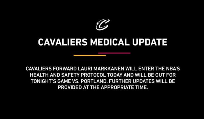 骑士官方宣布,马尔卡宁触发健康与安全防疫协议,确定缺席与开拓者的比赛,预计缺席几场比赛,骑士全队都已接种疫苗,但马尔卡宁和乐福仍旧因违规而被隔离。