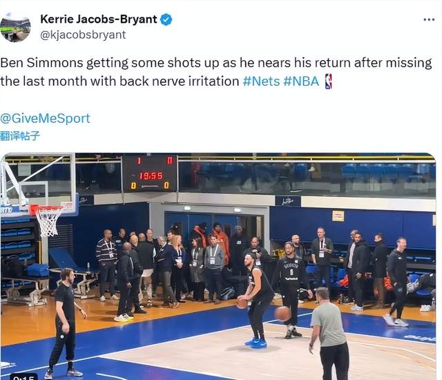 而主帅雅克沃恩在此前在接受采访时则表示:“西蒙斯在训练场,和多名教练进行了训练。他现在能进行一些对抗训练,但是是和几名教练一起,我们希望他以此为基础,继续恢复身体。他没有复出时间表。”不过根据报道,本西蒙斯和篮网已经就复出时间达成一致。