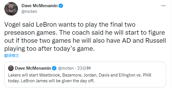 对阵太阳赛前,湖人官方曾晒出詹姆斯看手机的入场照,并且写道:我们都知道勒布朗在看什么?之后湖人官方晒出推文,但这条推人仍旧被曝光,记者Harrison Faigen晒出截图。