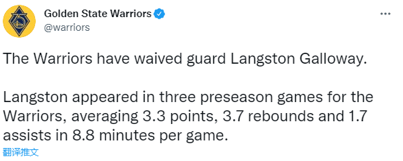 来源:24直播网10-10 11:1624直播网10月10日讯 ,勇士官方正式宣布,球队已经裁掉了后卫兰斯顿-加洛韦;季前赛出战三场,加洛韦的表现不佳,因此勇士提前宣布裁掉他。