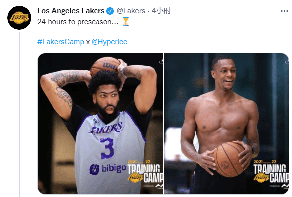 湖人官方还晒出詹姆斯、浓眉等人今日训练照,为季前赛预热,配文:距离季前赛开打还剩24小时;湖人和篮网季前赛揭幕战将在明天凌晨3点30分开打。