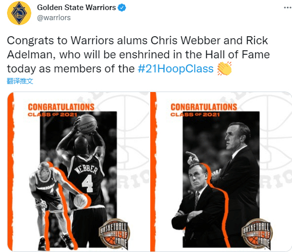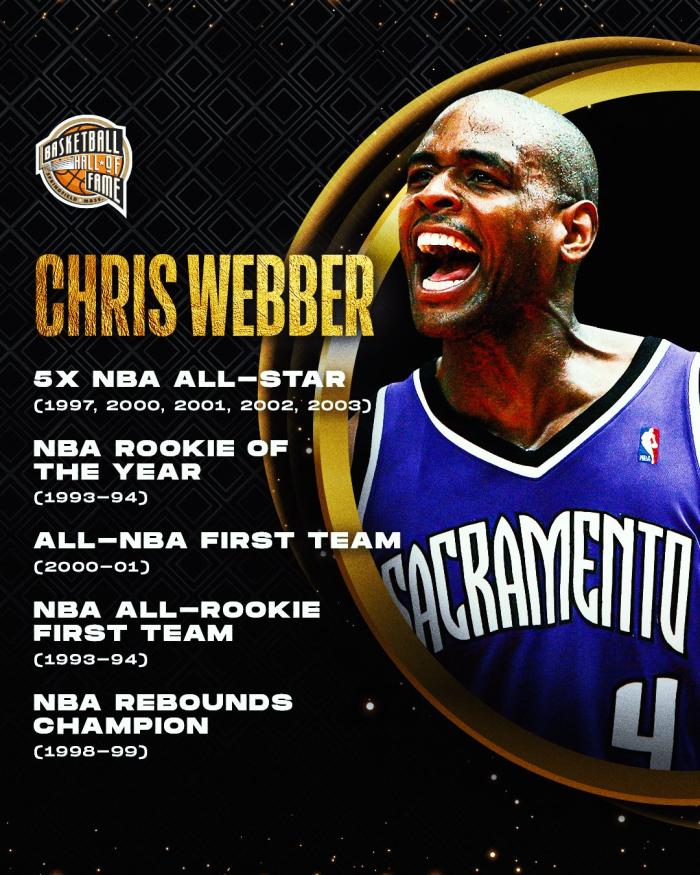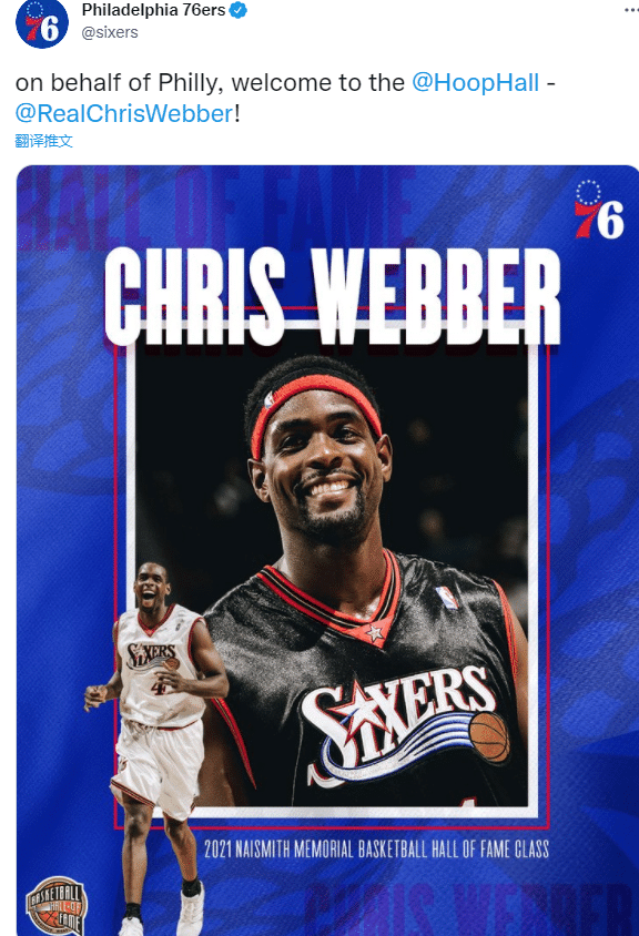 费城76人勇士队都恭喜韦伯入选名人堂,韦伯曾在勇士和76人打过比赛,生涯从勇士开始也是从勇士结束,巅峰期在国王;NBA官方也晒出韦伯的生涯荣誉,恭喜韦伯入选名人堂。