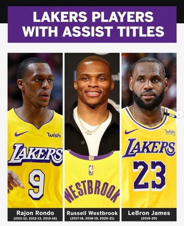 湖人三人包揽过去十年7次助攻王,其他3次被这两人包揽