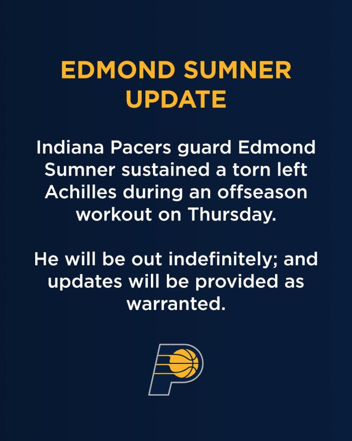 来源:24直播网09-10 09:4924直播网9月10日讯 ,印第安纳步行者队又有坏消息,步行者官宣,由于在训练中遭遇左脚跟腱撕裂的伤病,埃德蒙-萨姆纳将会无限期休战;步行者新星惨遭跟腱撕裂的重伤,遭遇汤神式悲剧,或提前赛季报销。