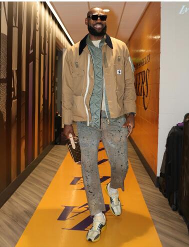 湖人主场对阵热火,雷迪什复出并且继续首发出战,预计詹姆斯和浓眉都会继续出战,老詹入场时身穿扎染长裤、戴着墨镜霸气亮相,满脸笑容十分轻松。