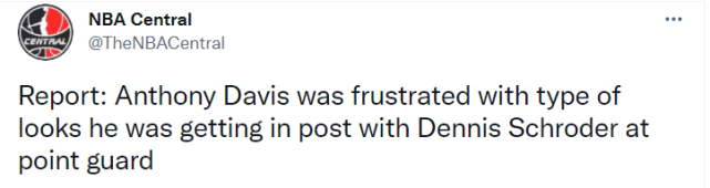 来源:24直播网09-02 10:5024直播网9月02日讯 ,据Bleacher Report记者Eric Pincus报道,消息源透露,上赛季,湖人球星安东尼-戴维斯对于自己与施罗德的合作感到沮丧,因为他在低位时没能从施罗德那里接到像前一年朗多那样质量的传球。