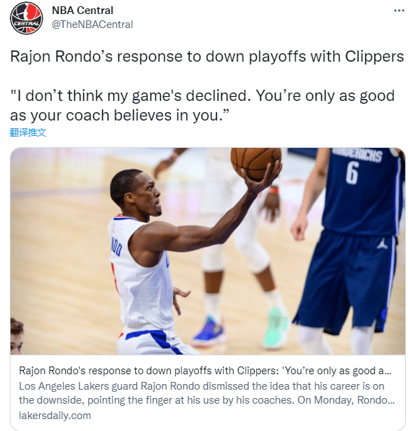 另外要说的是,谈到新赛季会在湖人队扮演什么角色时,朗多顺便回应了为快船打季后赛,他表示:我不认为我的比赛状态下降了,你的表现取决于你的教练对你的信任。